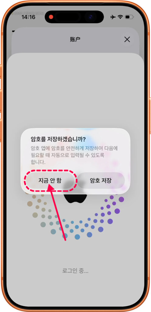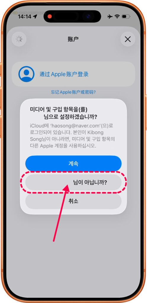 로그인 버튼을 터치하면 팝업창이뜨고 중간의 "XXXXX가 아닙니까?" 를 터치하세요