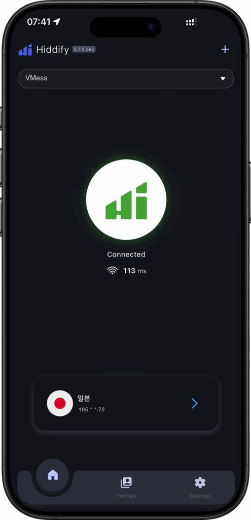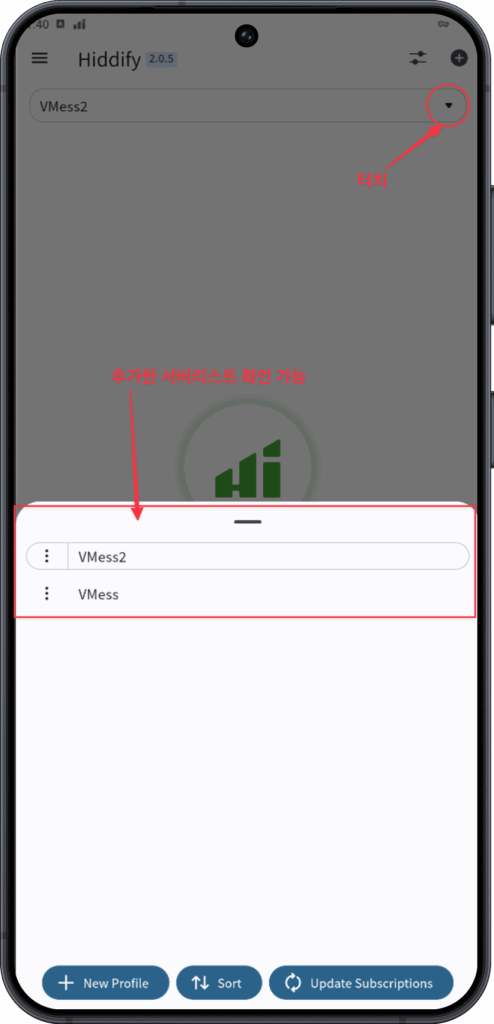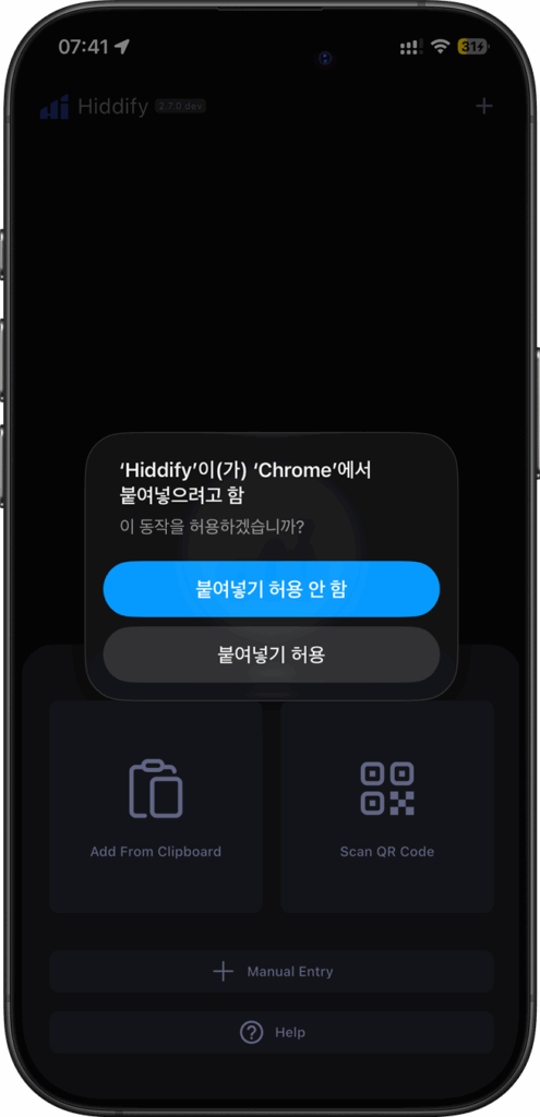 APP 스토어에서 설치한 Hiddify를 찾아 실행하세요.