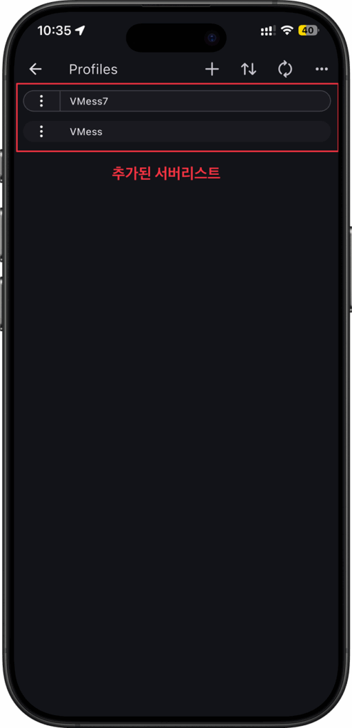 추가된 서버중 연결을 원하시는 서버를 터치 합니다.
